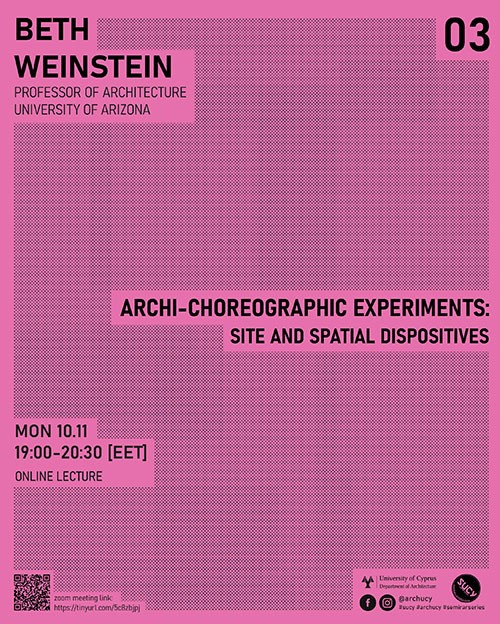 Προσκεκλημένη ομιλήτρια είναι η Beth Weinstein με θέμα «Archi-Choreographic Experiments: Sites and Spatial Dispositives»
