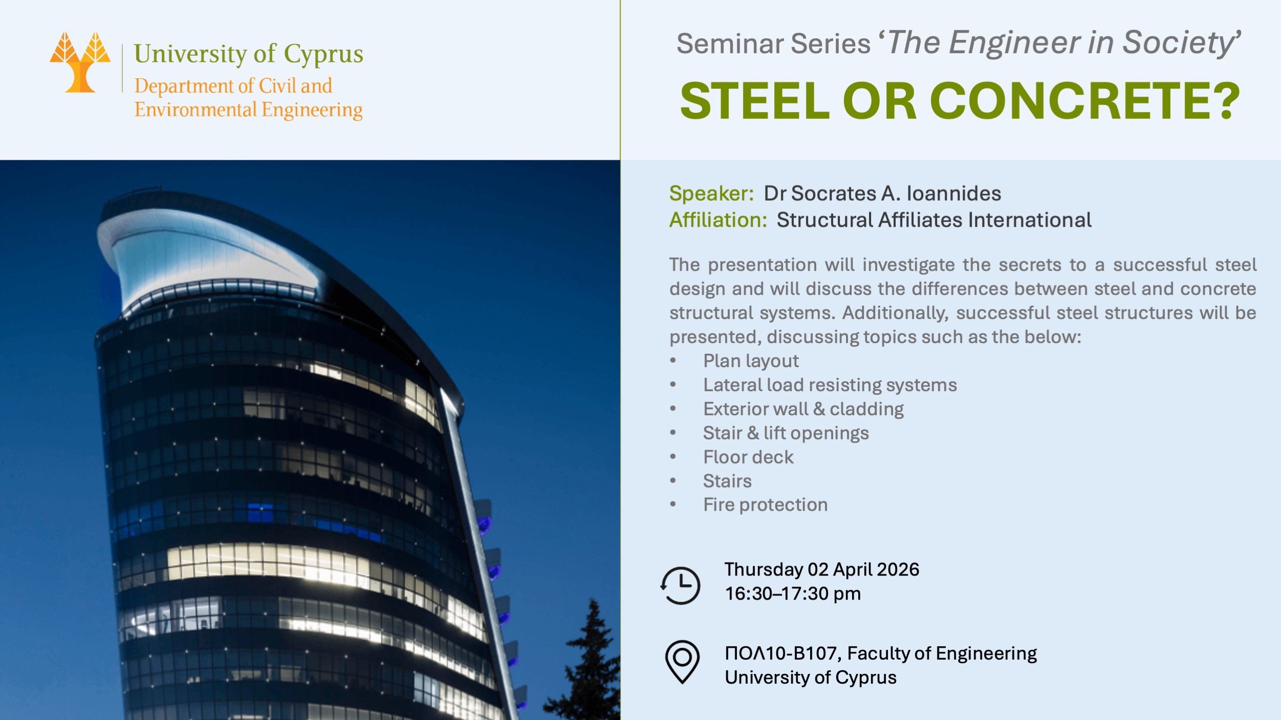 Seminar: Steel or Concrete? - by Dr Socrates Ioannides (Thursday 02 April)
