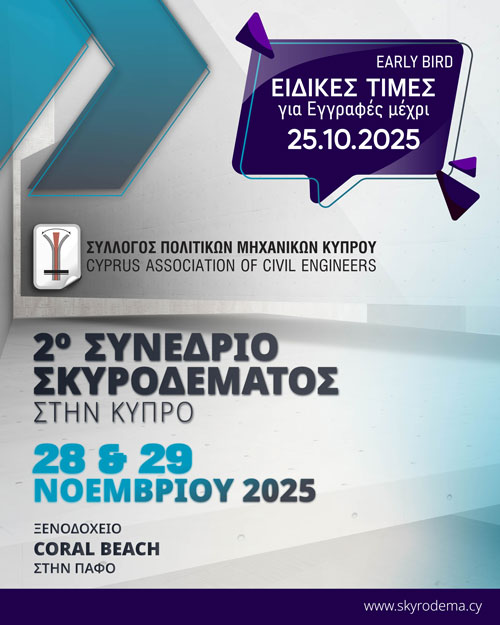 Ο Σύλλογος Πολιτικών Μηχανικών Κύπρου (ΣΠΟΛΜΗΚ) διοργανώνει το 2Ο Συνέδριο Σκυροδέματος στην Κύπρο. Το Συνέδριο Σκυροδέματος θα πραγματοποιηθεί στην Πάφο στις εγκαταστάσεις του ξενοδοχείου Coral Beach. στις 28-29 Νοεμβρίου 2025.