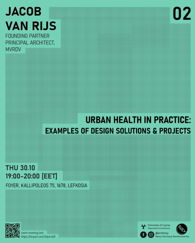 Προσκεκλημένος ομιλητής είναι ο Jacob van Rijs (MVRDV) με θέμα « Urban Health in Practice »